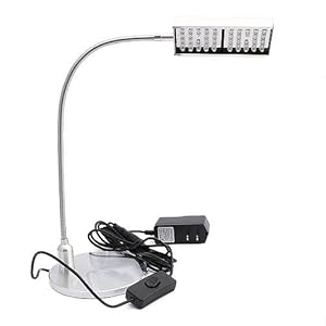 This is a great light for anybodies desk or table. It has 48 super bright LED's mounted in a flexible light, so you can point and shine the light where it is needed. The light from the LED's is a nice clean, white light that doesn't tire or strain your eyes. To turn on the lamp simply touch the base of the lamp where there is an orange illuminating ring that indicates where to touch. With the touch of your finger the light will turn on and off. It has a beautiful silver finish, and a strong flex shaft that allows you to direct the light. Works on any 100 - 240 volt AC current, and includes a six foot AC adaptor. Bulb Type: 48 Super Bright White LEDs Power Supply:100 - 240V AC Consumption : 7w Base Measurements: 6" x 4 3/4" x 5/8" Height 19 1/2" Max.