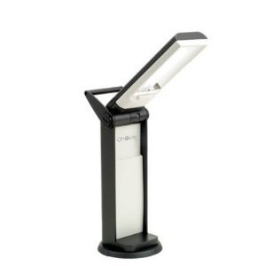 The Ott-Lite Task Lamp is lightweight and portable, and fits anywhere you need it to. The convenient, fold-up design includes a handle, which makes it easy to carry around the office or home. The light adjusts in several ways, including parallel to the desktop or straight up to illuminate larger areas, or attach it to the wall to save space. The included 13-watt bulb is rated to last up to 10,000 hours.