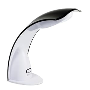 The light of the OttLite Natural Daylight Desk Lamp makes reading and close-up work easier. This lamp's curved contours house OttLite 508 Illumination technology, which minimizes heat and glare while simulating natural daylight. The energy-efficient 13-watt tube will last up to 10,000 hours. The streamlined lamp sits solidly on a weighted base, allowing you to bring the light wherever you need it.
